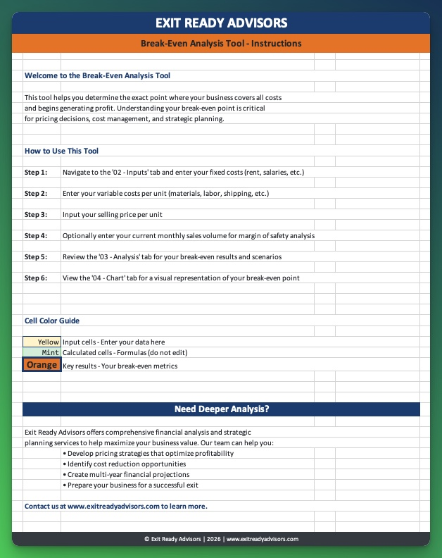 The same valuation models, checklists, and financial templates we use with our advisory clients. Built for business owners serious about maximizing their exit.